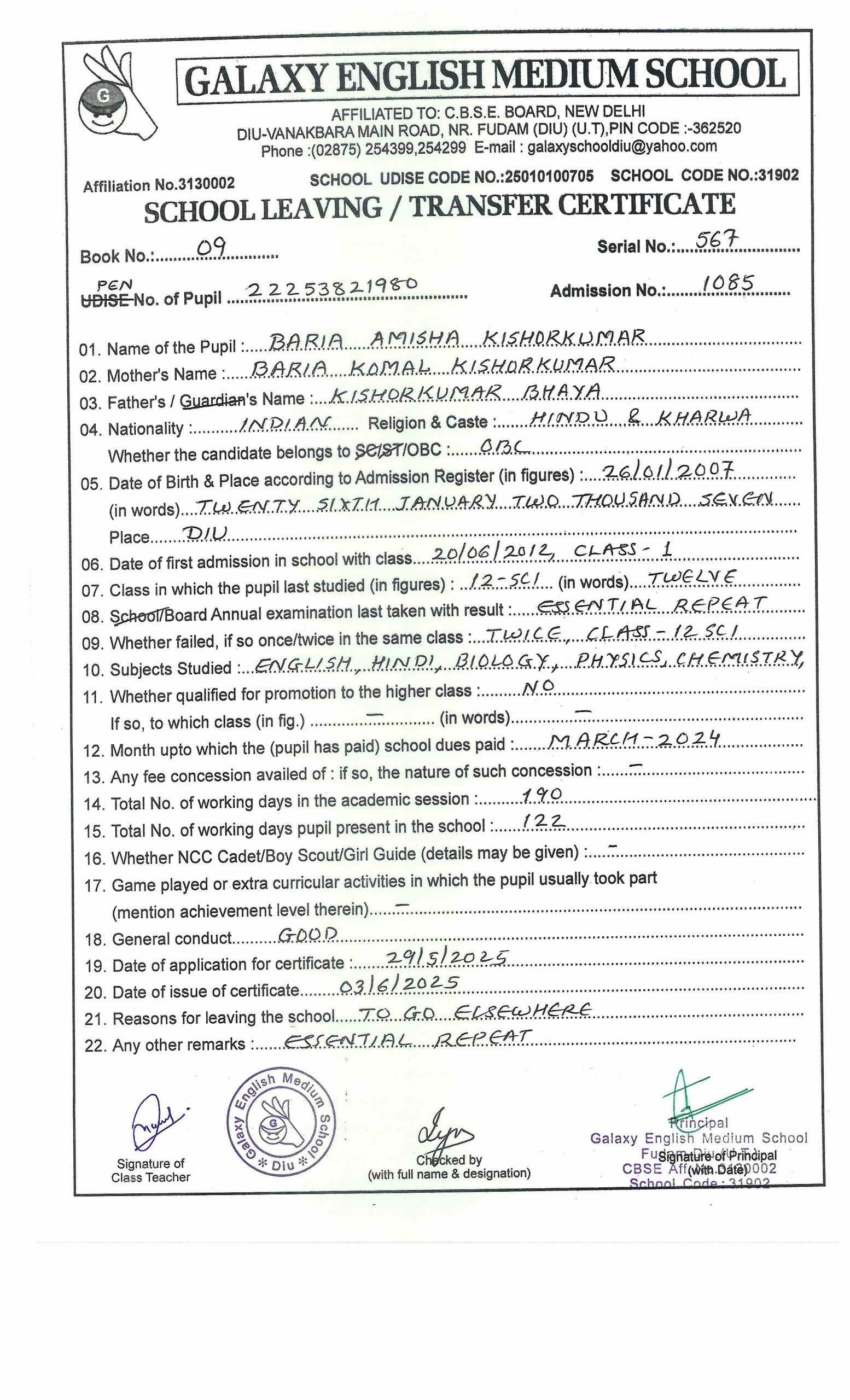 - BARIA AMISHA KISHORKUMAR