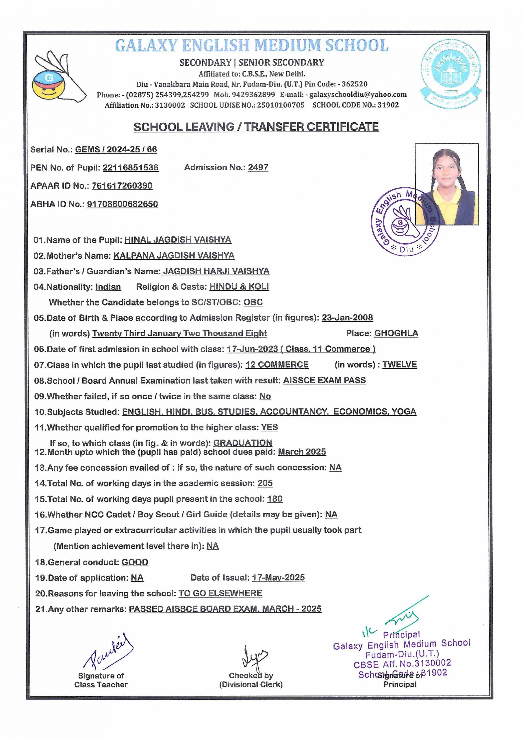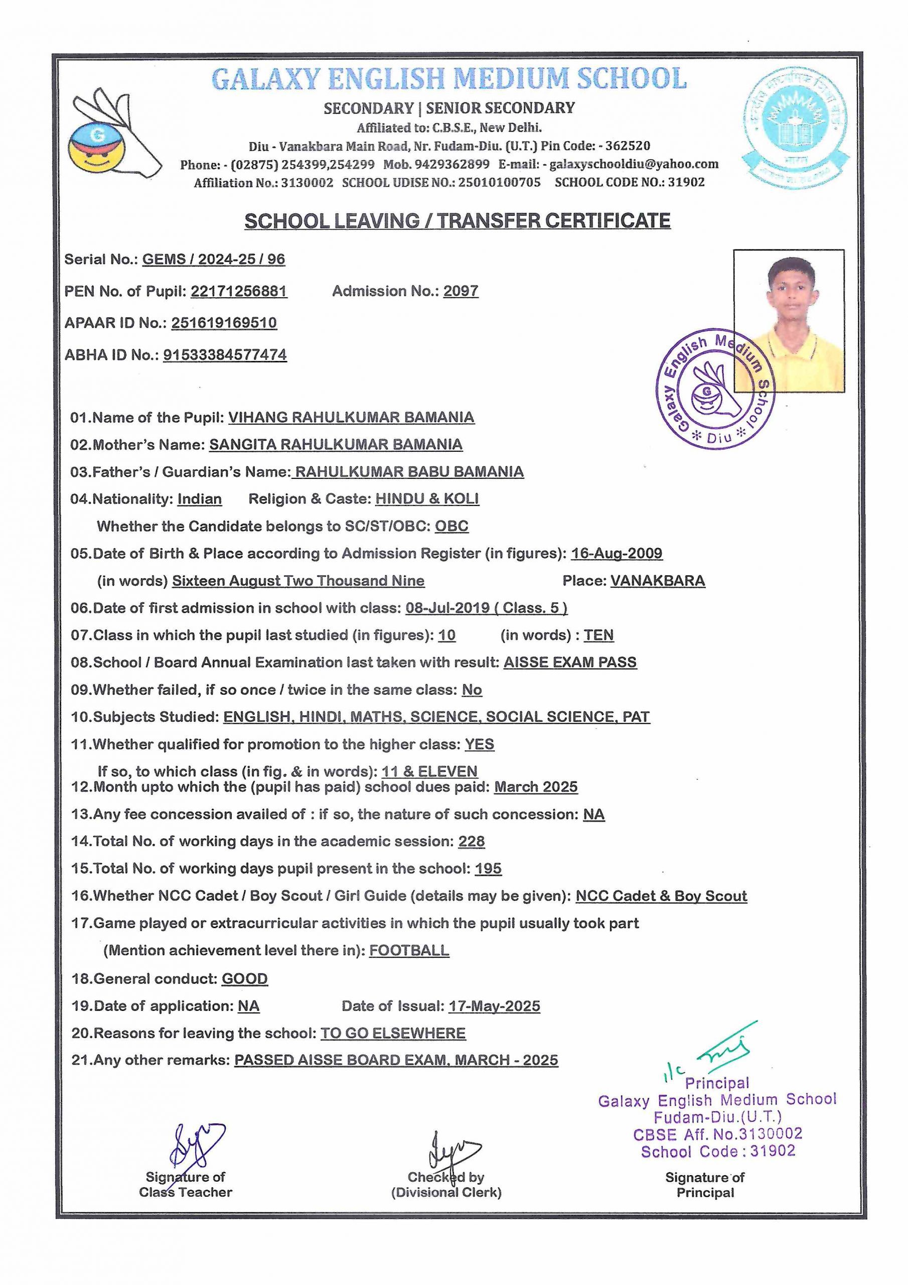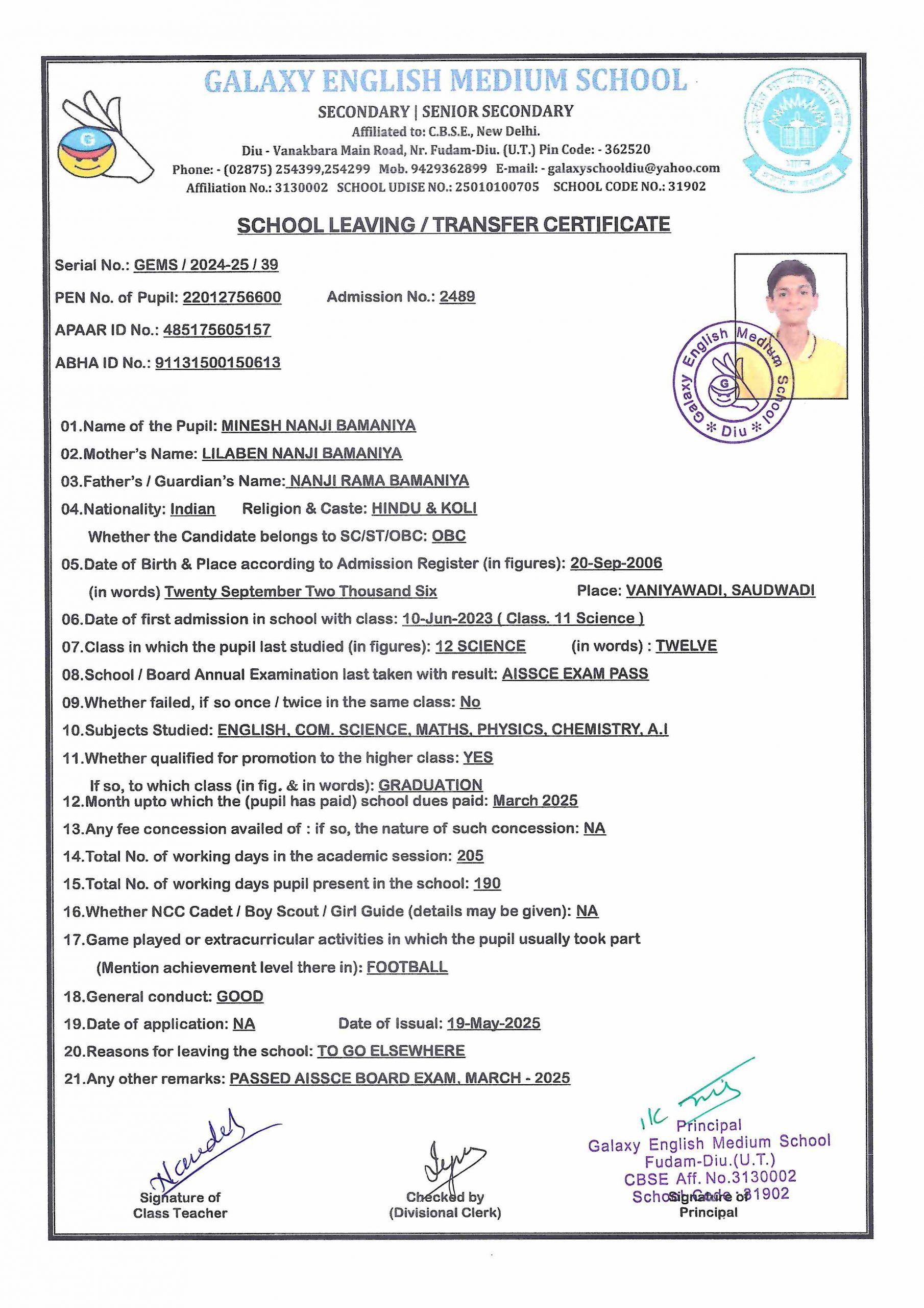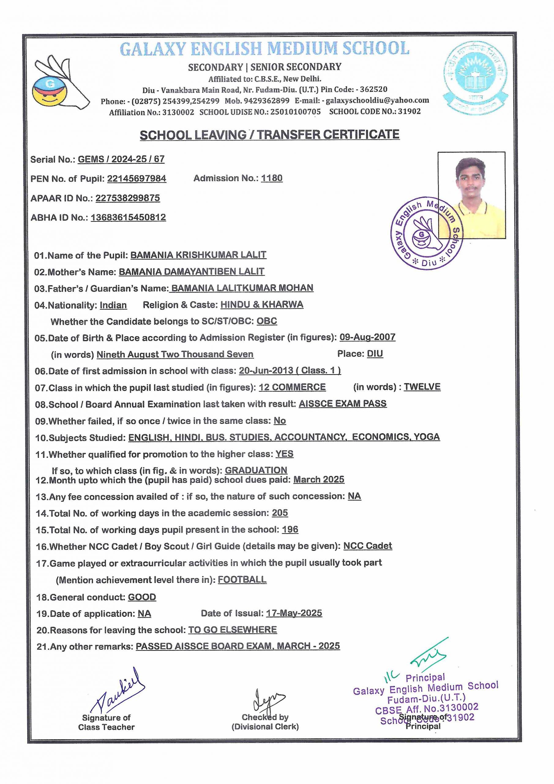 - VANSILKUMAR VINOD BAMANIA