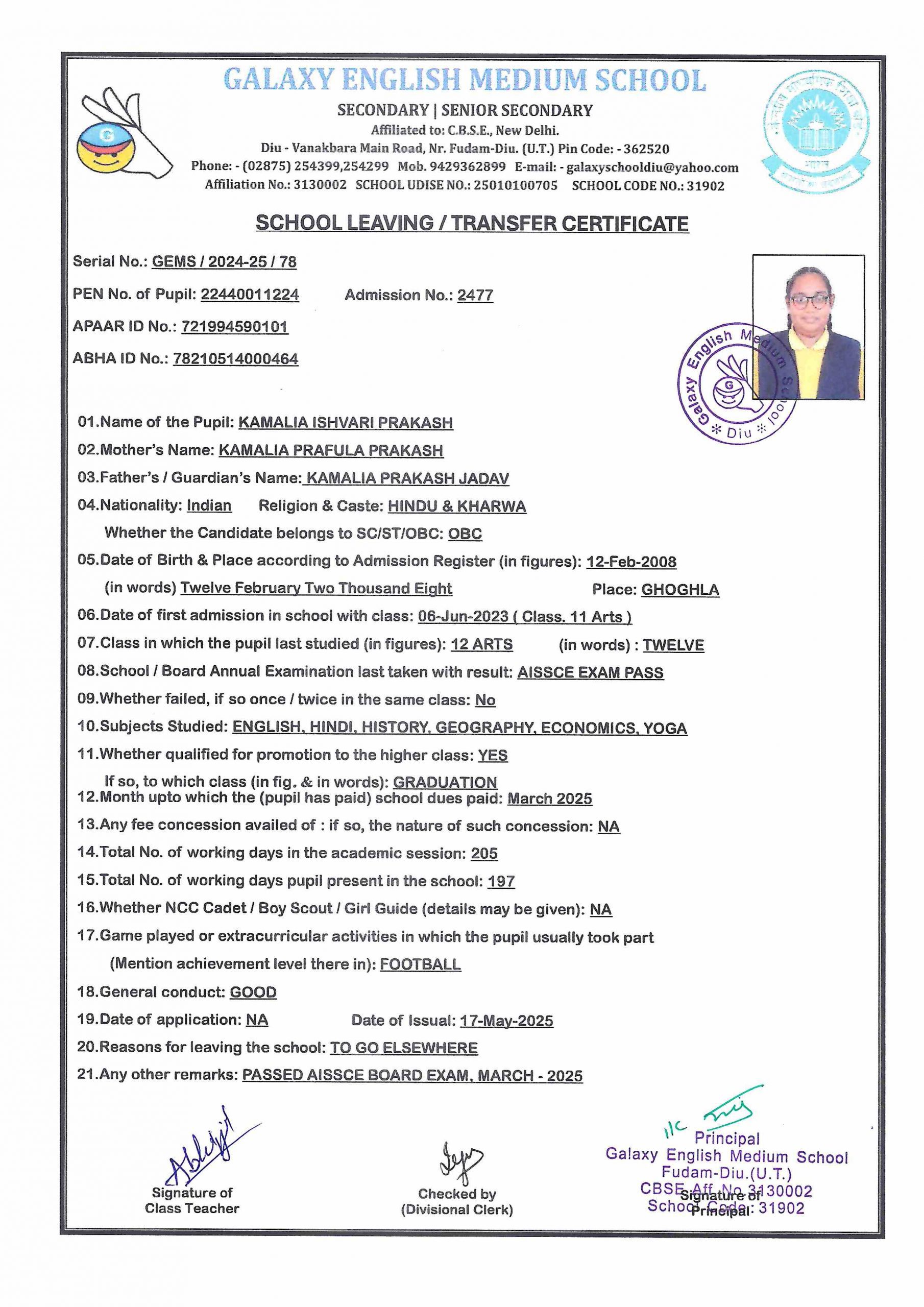 - KAMALIA VESHNAVI YOGESHKUMAR