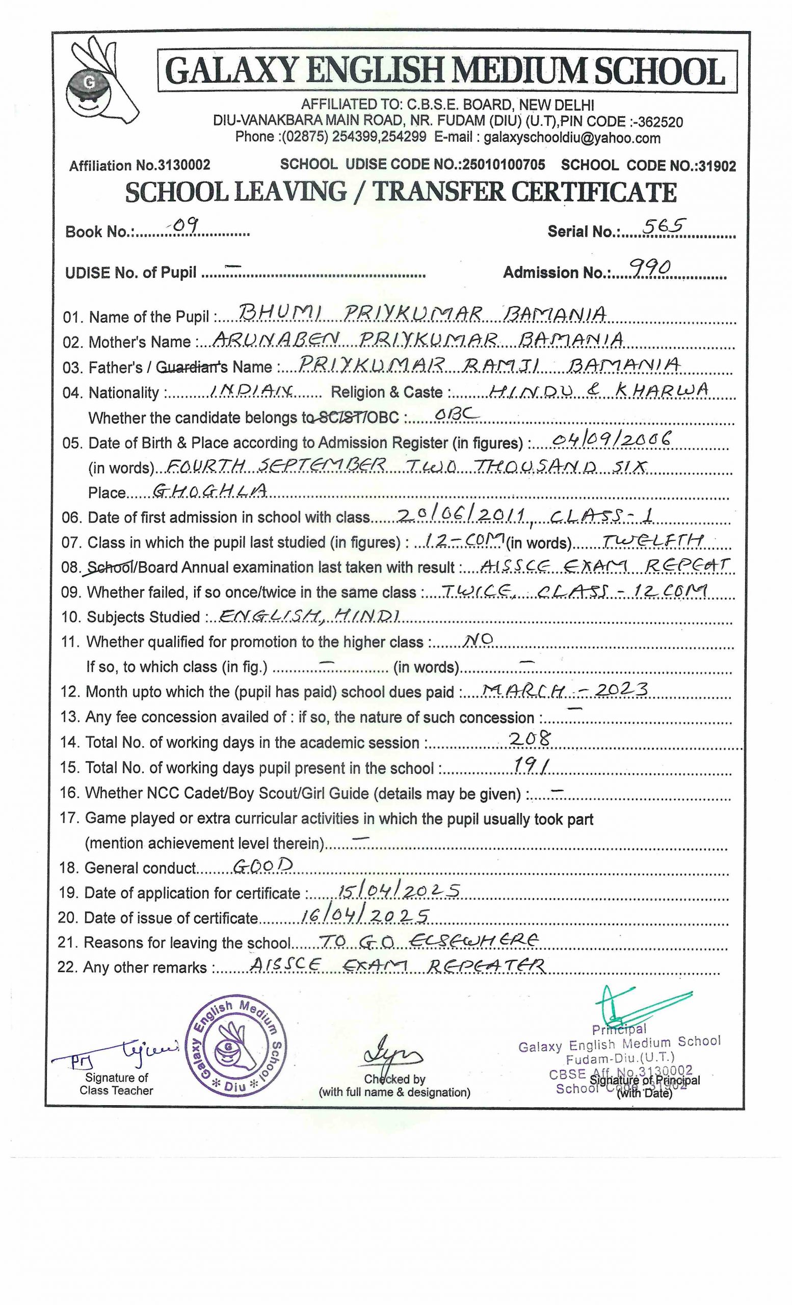 - BHUMI PRIYKUMAR BAMANIA